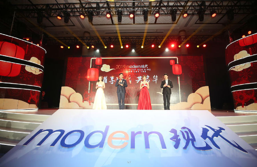 40年辉煌巨变,23载风雨砥砺,不忘初心创佳绩,耀享现代启华章。2019年1月30日,现代集团“耀享现代 共启华章——2019现代集团年度盛典”在天津四季酒店华美落幕。亲临现场的嘉宾有天津财经大学首席教授罗永泰,中天建设集团有限公司、伊势丹、乐宾等四季酒店、海河假日酒店等合作伙伴及现代集团各级领导、员工400 余人。盛典由“花开现代”“相庆丰年”“共耀未来”三个篇章构成。