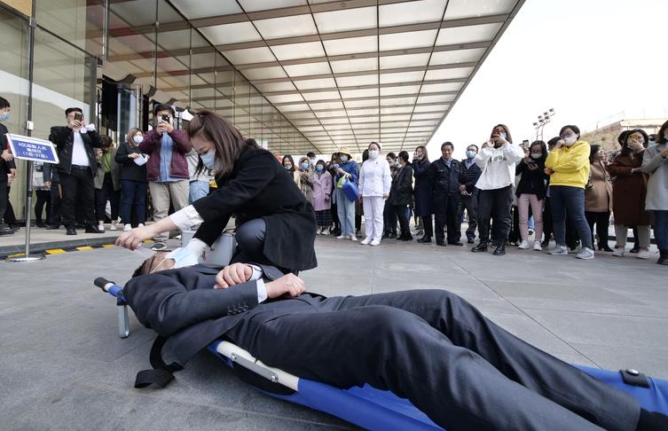天津和平消防救援支队参谋长赵玄白进行消防安全宣讲,首先,赵玄白强调了组织疏散演练对高层楼宇的必要性,介绍了安全逃生技能和注意事项,他表示,通过此次演练能够提高写字楼办公人员对紧急突发事件的应对能力,增强消防安全意识和自我保护能力,减少甚至避免因火灾带来的损失。其次,对灭火器、呼吸面罩等常用消防器材进行了讲解与示范。