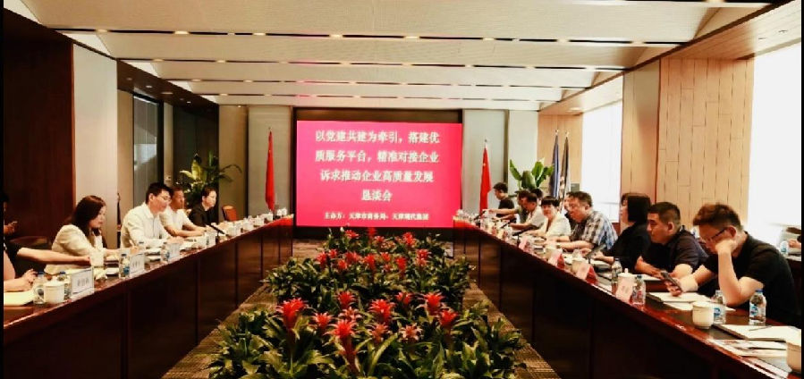 9月15日,市商务局副局长郎东带领多家民营企业来到天津国际金融中心,与天津现代集团进行对接交流,并召开“以党建共建为牵引,搭建优质服务平台,精准对接企业诉求推动企业高质量发展恳谈会”。集团总裁张刚、董办主任宁进军及有关部门负责同志参加。市商务局政务服务处、产业处、外资促进处、市民营企业协会与高新技术企业协会党支部以及天津市招商引资促进会、天津市融资租赁行业协会、天津市商业保理协会等近30家企业参加。