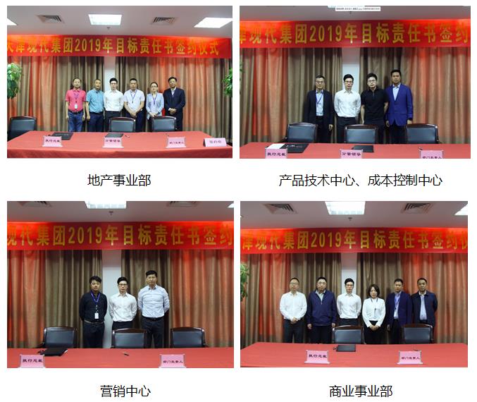 签约环节,现代集团执行总裁马亦龙与各中心、事业部的高管、部门负责人签订了2019年《目标责任书》,责任书的正式签订,标志着现代集团2019年各项指标和工作任务已经全面分解落实到位。