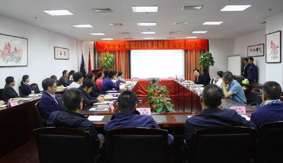 5月5日上午,天津现代集团2019年目标责任书签约仪式在集团9楼V1会议室顺利举行。此次签约仪式由集团副总裁王成秋主持,共有集团高层、集团各中心、事业部及下属机构负责人等30余人参与。