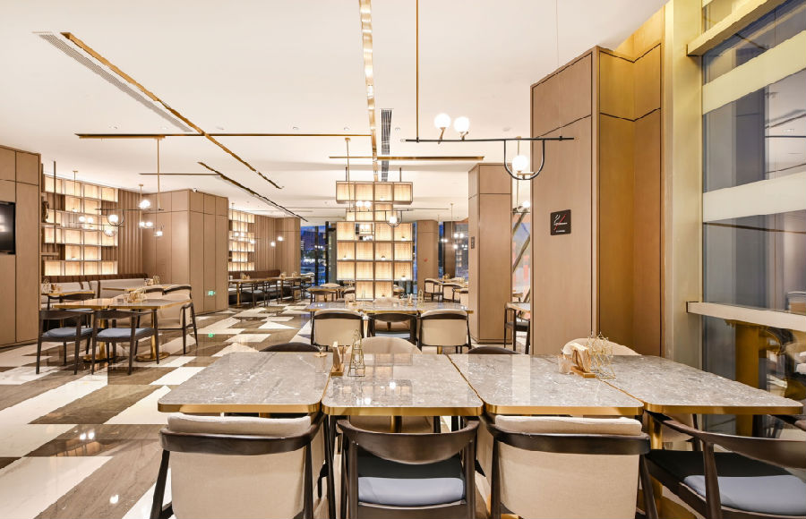 相招的设计也是天津之眼亚朵酒店的一大亮点,富丽雅致的用餐氛围,香槟金色点缀其中,将落地窗外的城市风光映入眼底,为旅者提供天津本地特色菜品。在这样静美的氛围中,与家人朋友一同品尝美食岂不美哉?