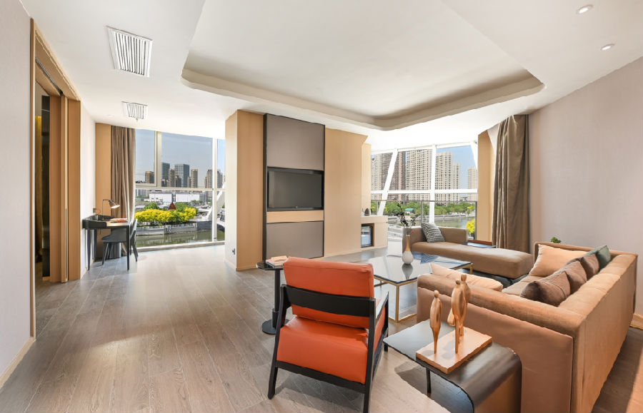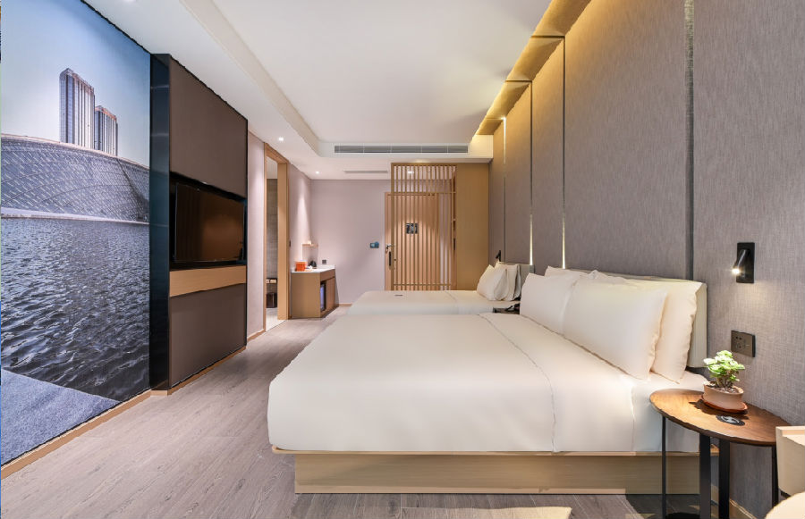 追求用户体验是天津之眼亚朵酒店的核心。酒店共有7种房型,163间客(套)房,所有客房均采用普兰特系列优质床品。房间设计上,天津之眼亚朵酒店最大客房面积达到70㎡,并配有景观阳台,最小客房面积也保证在28㎡。此外,天花吊顶部分超出了亚朵集团其他酒店吊顶的高度,做到了2.7m,大大增加了室内空间的开阔度与舒适感。